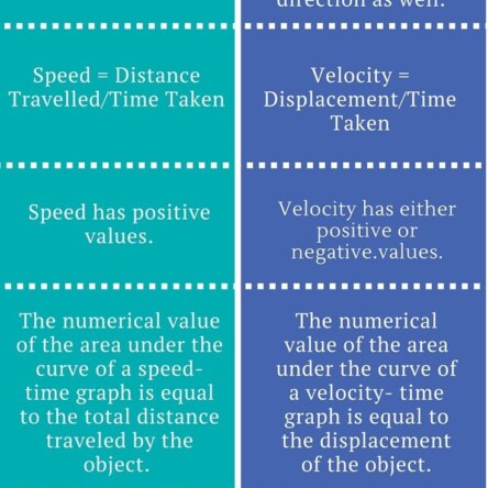 The main difference between speed and velocity is that speed is a scalar quantity, while velocity is a vector quantity:
